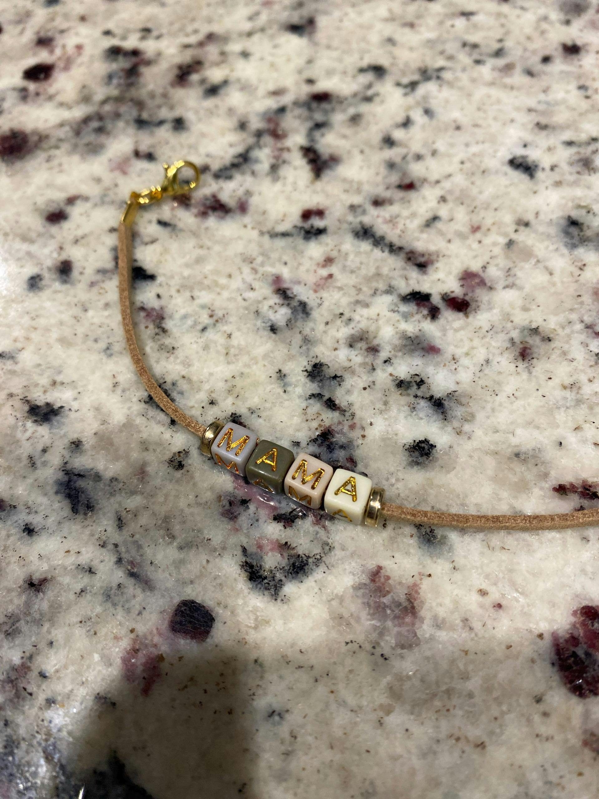 Beautifully colored word bracelets representing moms and grandmas just in time for Mother’s Day.