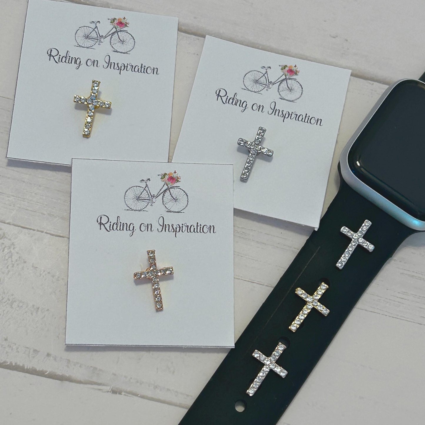 Rhinestone Cross Stud Watch Charm, Watchband Jewelry, Christian Jewelry, Apple Watchband, Samsung Galaxy Watchband, Fitbit, Garmin